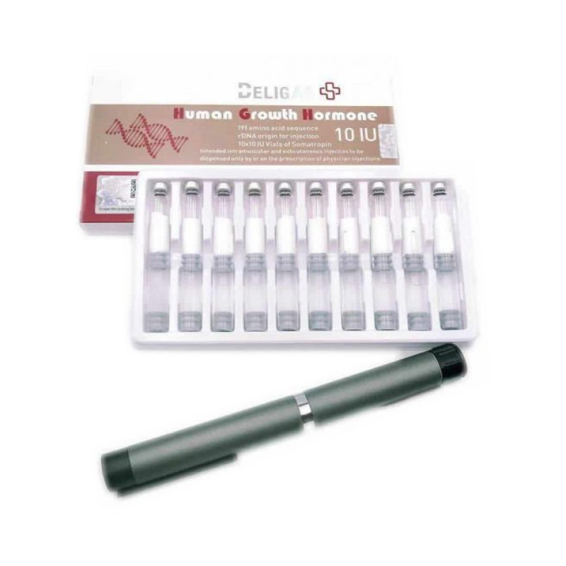Buy HGH 10IU Online. Human Growth hormone (HGH), also known as somatotropin or somatropin, is a peptide hormone that stimulates growth, cell reproduction and regeneration in humans and other animals. It is a type of mitogen which is specific only to certain kinds of cells. Growth hormone is a 191-amino acid, single-chain polypeptide that is synthesized, stored, and secreted by somatotropic cells within the lateral wings of the anterior pituitary gland. Many factors influence the release of Human Growth Hormone, however, including nutrition and exercise.